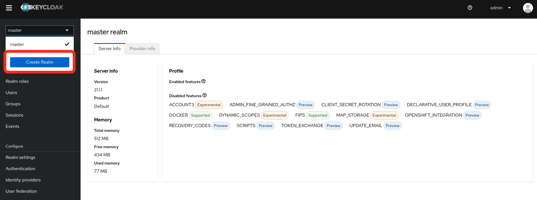 - If Keycloak is being used as an Identity Provider, users can be created here.