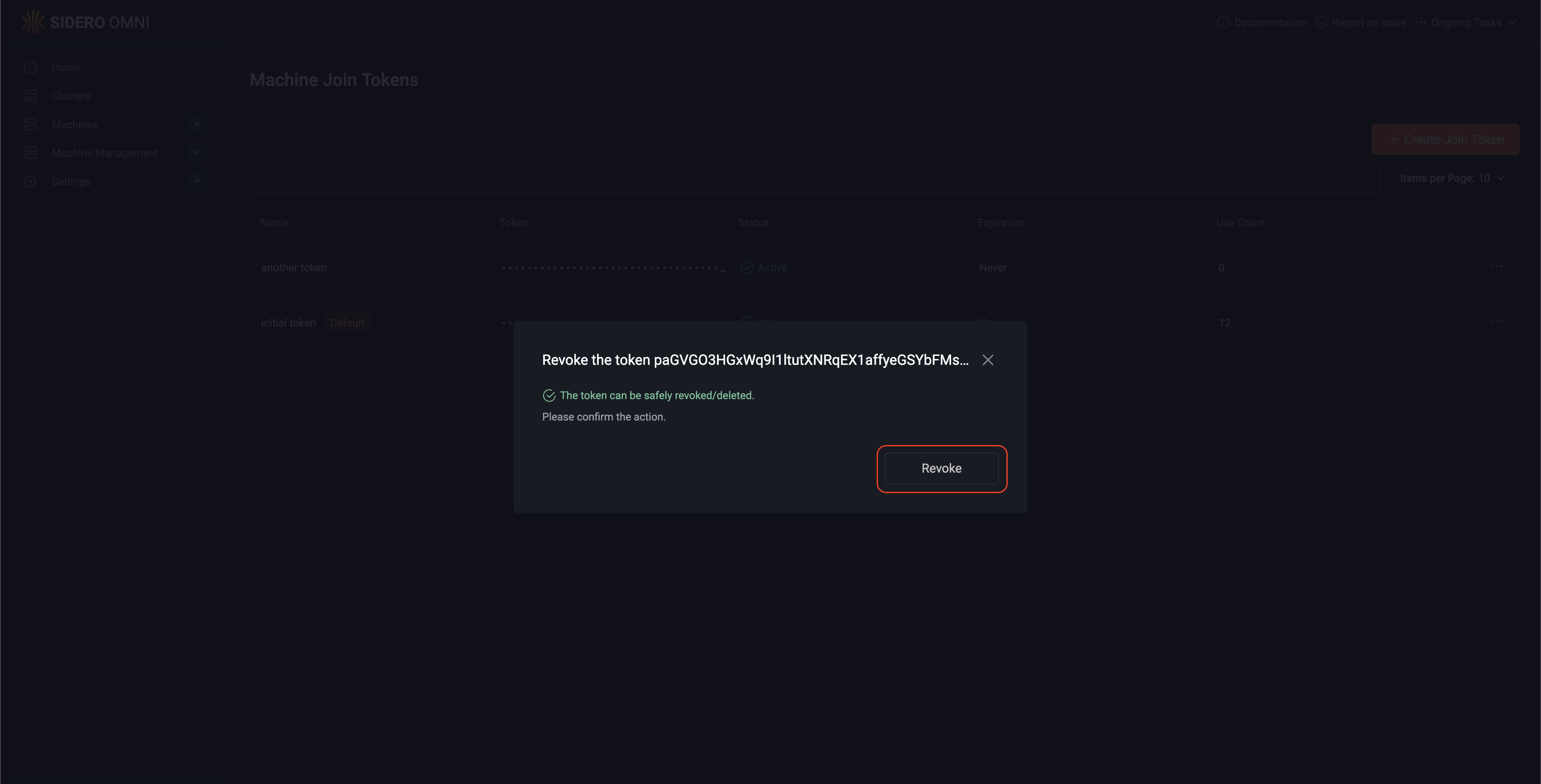 Click the “Join Tokens” section button under “Machine Management” in the sidebar. Next, click the “Create Join Token” button on the right.
